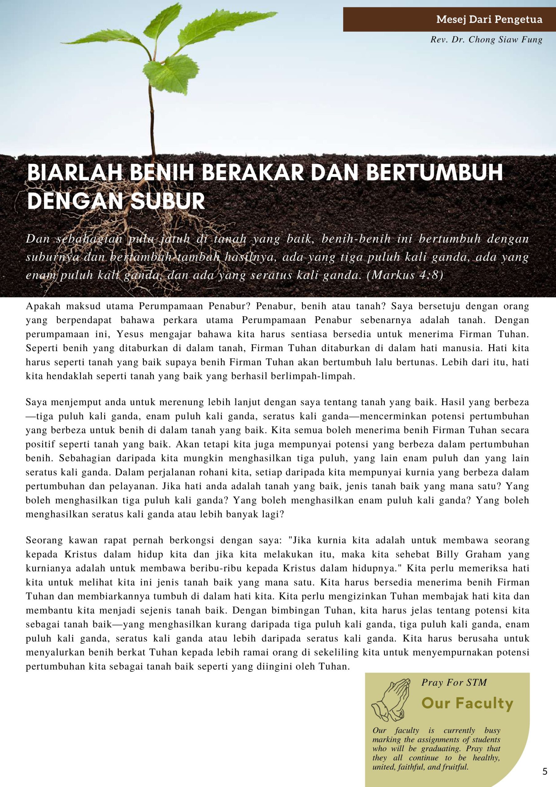 LET THE SEED TAKE ROOT AND GROW ABUNDANTLY 让种子发芽、 扎根、茁壮成长 Posted On September 30, 2025 Related Posts THIS AND THAT SIDE OF HEAVEN 院长的信息 ——捕捉异象 WILL YOU JOURNEY WITH HIM? About The Author stmberita