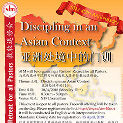 In conjunction with the celebration of the 40th Anniversary of STM in 2018, STM will be organizing a Pastors’ Retreat for all Pastors.