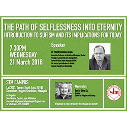 STM Centre for Religion and Society (CRS) is organizing a public seminar “The Path of Selflessness Into Eternity: Introduction to Sufism and It’s Implication for Today” on the 21st March 2018(Wednesday) at 7.30pm. The speaker is Dr Mohd Rushdan Jailani and the moderator is Rev Dr Sivin Kit. Please […]
