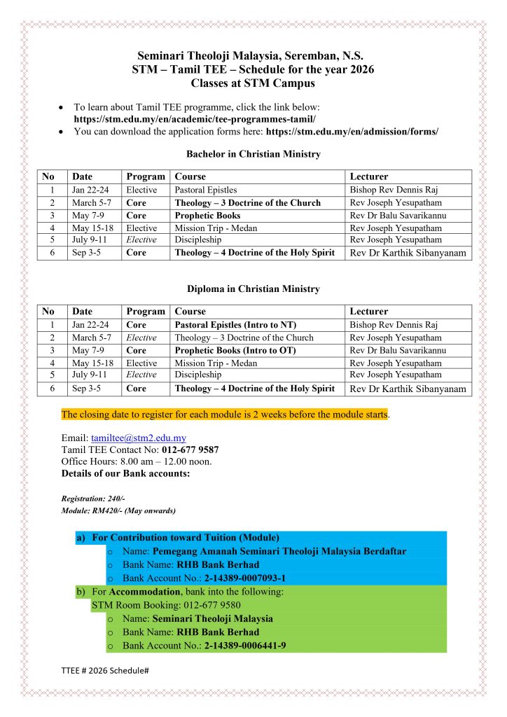 For course registration and enquiries, please email tamiltee@stm2.edu.my